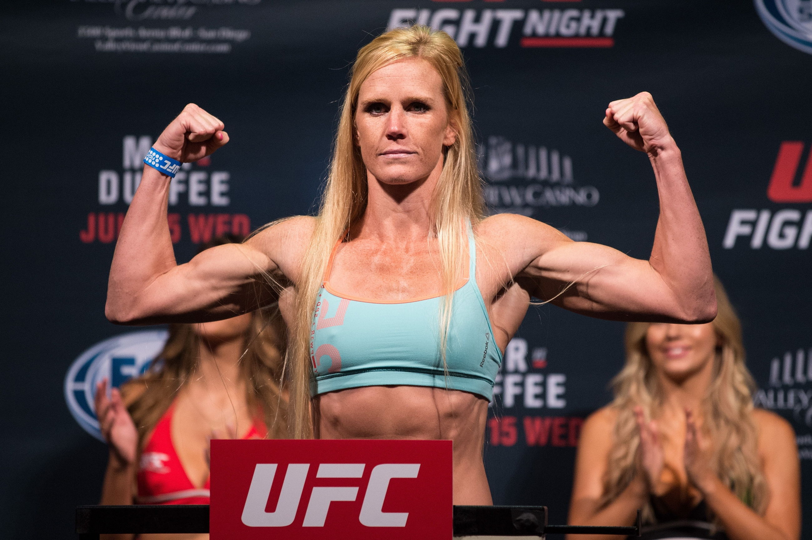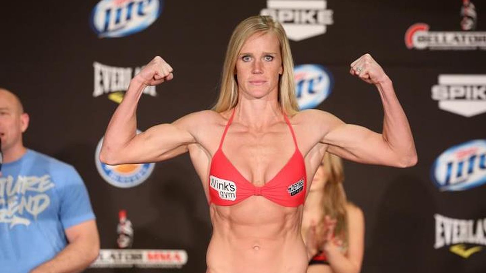 Холли Холм, звезда женского боевого спорта и чемпионка ММА, не снималась обнаженной для мужских глянцевых изданий. Все ее откровенные моменты ограничиваются лишь рингом, где она демонстрирует свои спортивные достижения. Папарацци иногда фиксируют на фотографиях подтянутую фигуру спортсменки, в том числе и редкие кадры в купальнике.