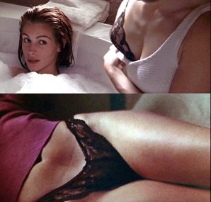 Джулия Робертс, родившаяся 28 октября 1967 года, часто привлекает внимание публики благодаря своим появлением на пляже. Актриса демонстрирует свою фигуру в купальниках и может быть запечатлена папарацци во время отдыха. В её фильмографии присутствуют сцены с элементами эротики, однако они исполнены со вкусом и скромностью. Например, в мелодраме «Красотка» есть эпизоды с откровенным нижним бельем, а также момент обнаженной груди в картине «Ничего личного».