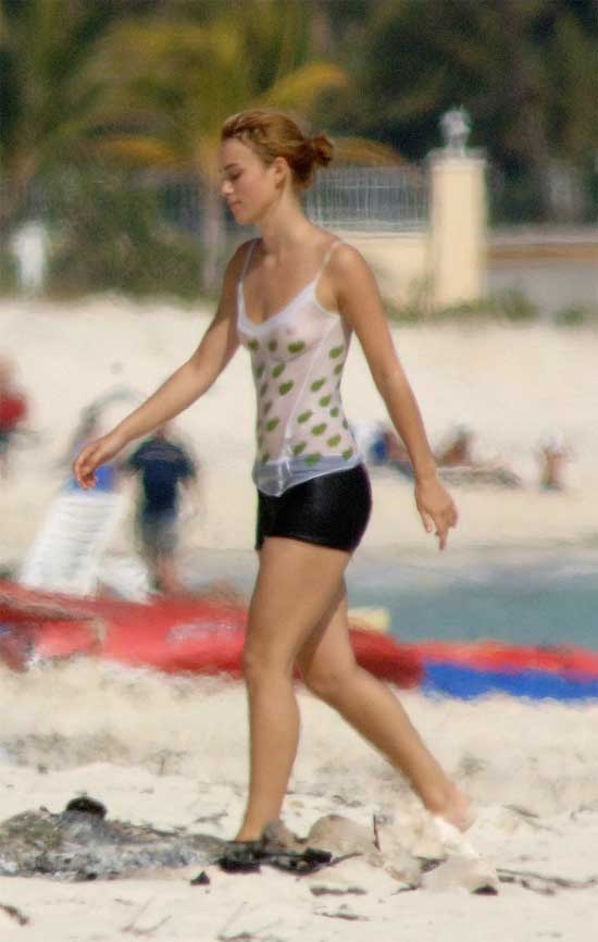 Кира Найтли, известная британская актриса, нередко появляется в фильмах с откровенными сценами. В таких картинах, как «Пиджак», «Домино» и «Запретная любовь», она исполняет роли, требующие определенной смелости. Хотя эротических фотосессий с её участием немного, папарацци удалось запечатлеть ее на отдыхе в ситуациях с элементами обнаженности.