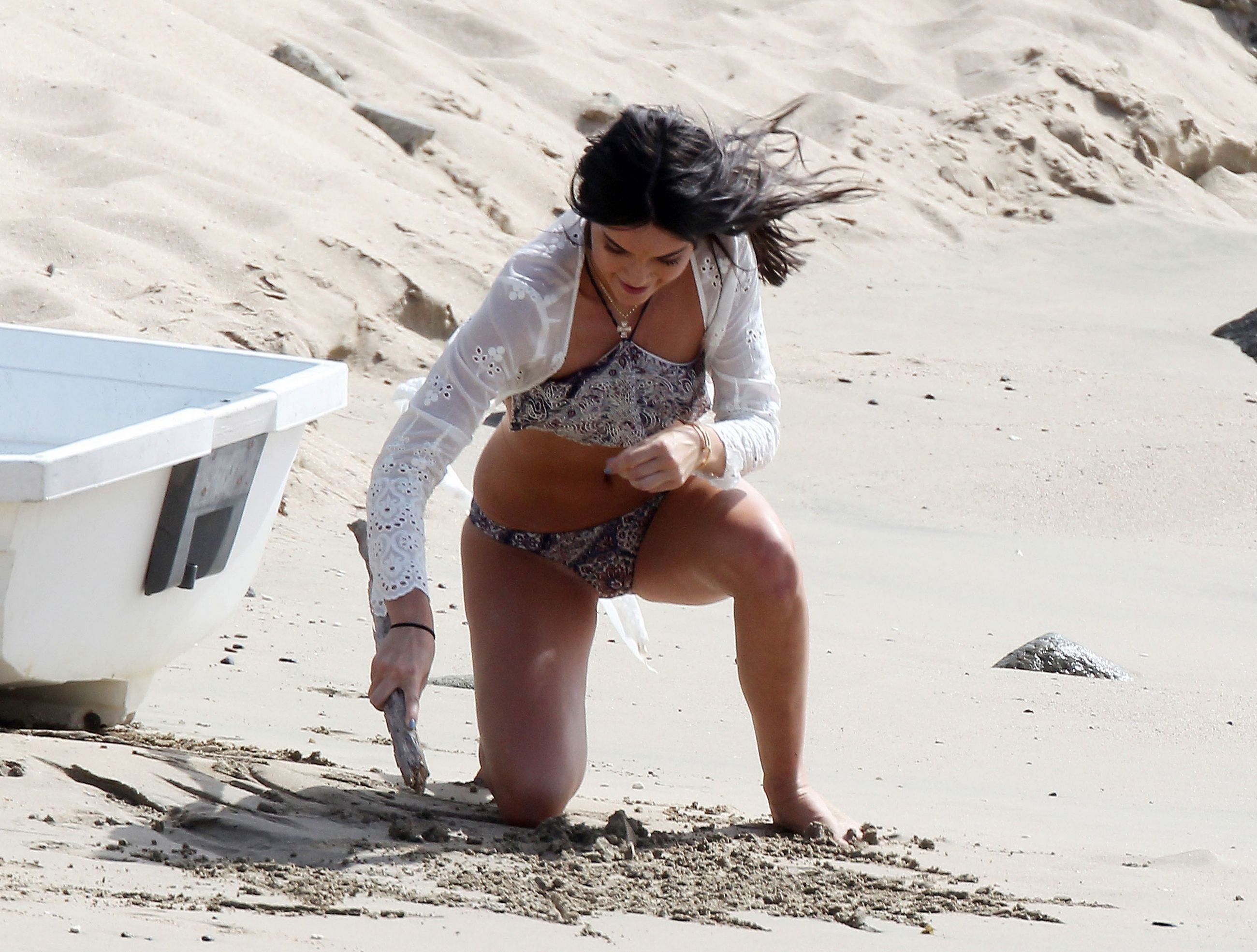 В 2018 году произошел инцидент, когда хакеры распространили интимные фотографии Кендалл Дженнер. На этих снимках модель позирует обнаженной на пляже, демонстрируя свою фигуру и привлекая внимание мужской аудитории. Дженнер известна своими выступлениями на подиуме для таких брендов, как «Виктория Сикрет», а также рекламными кампаниями без одежды. Папарацци запечатлели ее в купальнике, который подчеркивал ее формы и создавал эффект легкой эротики.