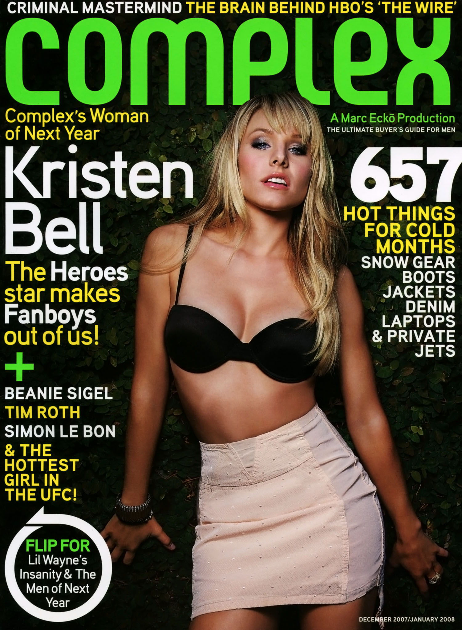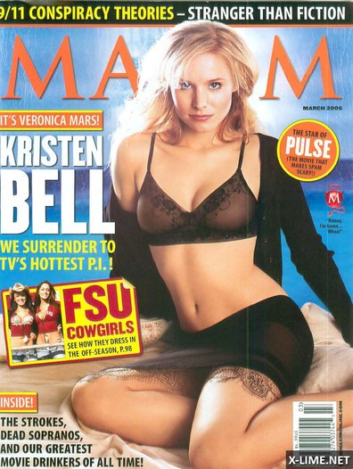 Кристен Белл, известная актриса и звезда кино, не позировала обнаженной для мужских журналов. Тем не менее, ее тело можно увидеть в эротических сценах фильмов таких как «В пролете», «Пульс», «Хватай и беги», «Дом лжи» и «Спасатель». Также папарацци неоднократно снимали ее во время отдыха в купальнике. Несмотря на отсутствие откровенных фотографий в глянцевых изданиях или утечек от хакеров, она демонстрирует смелость раздевающегося персонажа на экране.