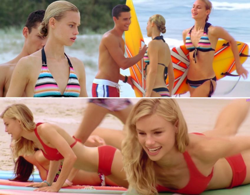 Люси Фрай, родившаяся 13 марта 1992 года, приобрела известность благодаря своим ролям в фильме «Студент со связями» и сериале «Неземной сёрфинг». В этих проектах она появилась в пляжном костюме, демонстрируя обнаженную грудь на некоторых кадрах. Также есть моменты, где акцентируется внимание на ее бюсте в купальнике.