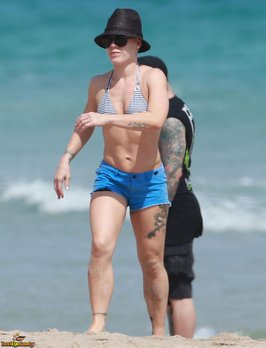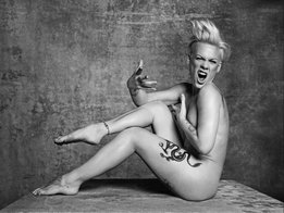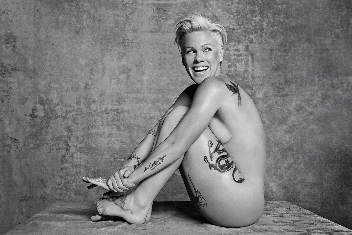 Пинк часто позировала обнаженной в для различных журналов. В одних из снимков певица прикрывает интимные части тела руками, что позволяет поклонникам восхищаться ее татуированным телом. Также в личном архиве артистки есть откровенные фотографии, на которых она делает пирсинг соска. Интерес к ее фигуре подогревается и снимками, сделанными папарацци, запечатлевшими звезду в купальниках.